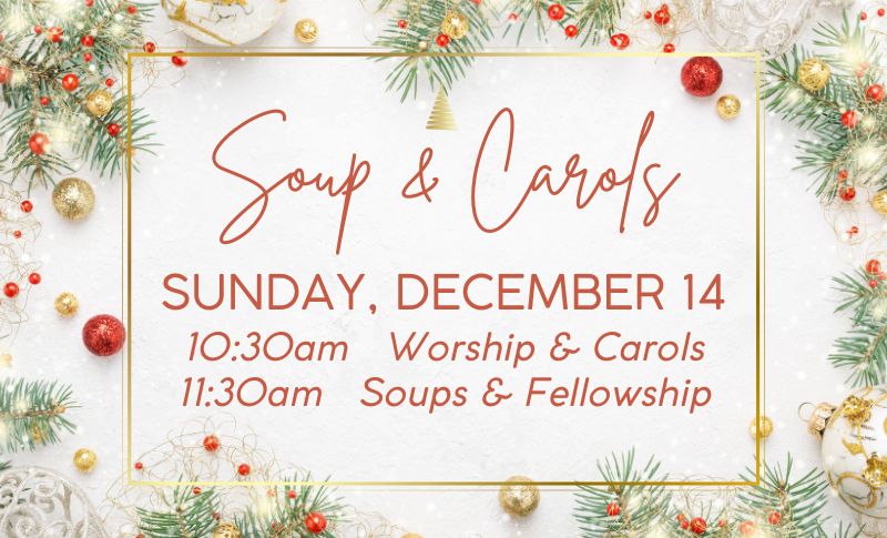 What gets us more into the spirit of Christmas than music! Join us for a morning full of special music by Onward, Chancel Choir, and church members. After worship, stick around and head over to the Activities Building to sample different soups made by the congregation!